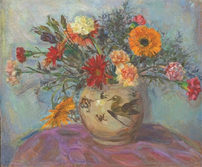1975年的《磁州窑瓶花草》就是对于“绘画的本领”较早的明证。袁运生用空闲倡导绘画细节,把古典元素看成遮拦,将布景、前程进行形势化,一种在对比中的人命力呼之欲出。