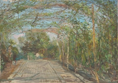 稍早一年创作的《长春植物园》则请示咱们,袁运生自觉地矜恤着天然。与西方昂扬画或空闲派不同,袁运生艺术的天然从启程点便佩带了一种轻细但强力的精神天然——天然,西方昂扬画的精神天然也很充沛,但那是另外一趟事。画面中,透视消失点所在区域的构图,被不行比例地稀罕了出来,仿佛使我透过天然的档次,体味到东谈主的档次。袁运生艺术中内含的精神天然意味着,天然看成容器,东谈主看成能源。此刻,社会倡导的找事在东谈主、文艺复兴的对东谈主的发现,在这里聚拢在了一谈。