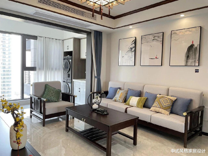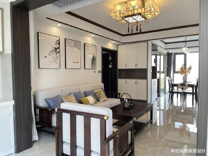 傍晚时辰,推开家门,一盏宣纸灯笼在玄关处洒下轻柔的光晕。客厅中央,一张修订明式沙发静候主东说念主归来,背后的水墨山水墙上,几笔淡墨勾画出远山详尽。厨房里传来茶壶的轻鸣,细长茶漏过滤着金黄的普洱,茶香与窗外晚风交汇——这就是一天中最安宁的时刻。