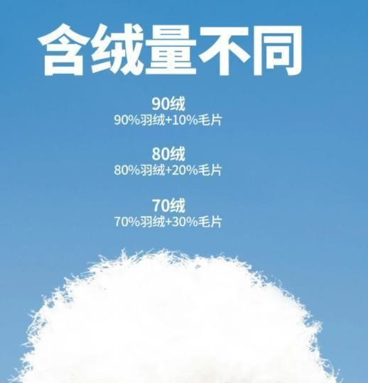 只认“绒子含量”,这个数值越高越温暖。